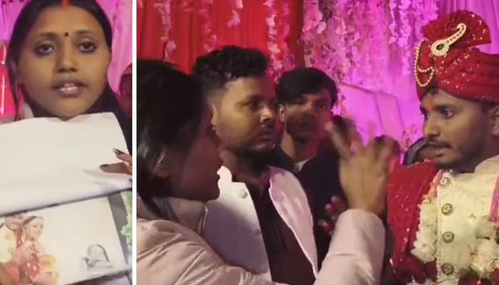 بھارتی میڈیا رپورٹ کے مطابق حیران کن واقعہ بھارتی ریاست اتر پردیش کے ضلع ’بستی‘ میں رواں ہفتے ہی پیش آیا، جہاں ونے آنند شرما نامی شخص کی شادی کی تقریب جاری تھی کہ اسی دوران ونے کی پہلی بیوی ریشما اپنے خاندان کے ساتھ اسٹیج پر آدھمکی۔