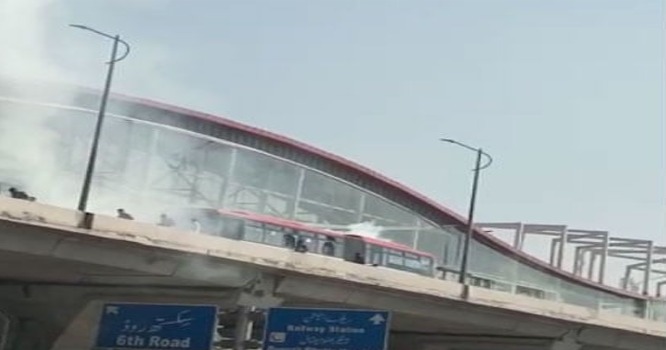 راولپنڈی ،میٹروبس میں آتشزدگی ، دو افراد بے ہوش، شیشے توڑ کر جان بچائی