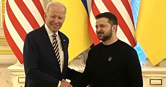 امریکی صدر غیراعلانیہ دورے پر یوکرائن کے دارلحکومت کیف پہنچ گئے