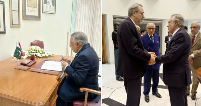 وفاقی وزیر خزانہ محمد اسحاق ڈار کا اسلام آباد میں ترک سفارتخانے کا دورہ