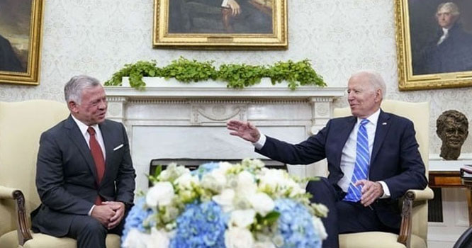 واشنگٹن(نیوزڈیسک)امریکی صدر جو بائیڈن نے اردن کے بادشاہ عبداللہ دوم کے ساتھ وائٹ ہاؤس میں ہونے والی ملاقات میں مسجد الاقصی کے احاطے کی قانونی حیثیت کو برقرار رکھنے پر زور دیتے ہوئے اسرائیلی مؤقف کو مسترد کردیا۔ عالمی خبر رساں ادارے کے مطابق امریکی صدر جوبائیڈن نے اردن کے بادشاہ عبد اللہ دوم اور […]