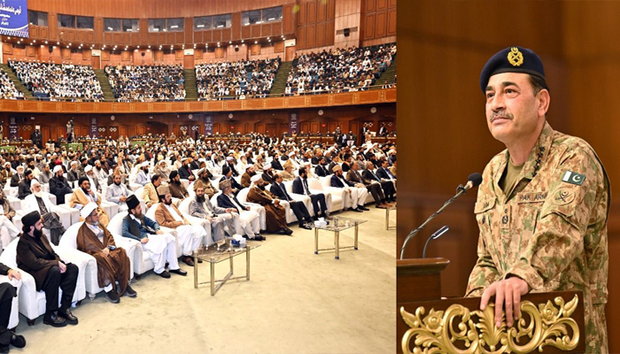 اسلام آباد (اے بی این نیوز )چیف آف آرمی سٹاف و چیف آف ڈیفینس فورسز فیلڈ مارشل سید عاصم منیرنےقومی علماء مشائخ کانفرنس سے خطاب کرتے ہو ئے کہا ہے کہ ریاستِ طیبہ اور ریاستِ پاکستان کا آپس میں ایک گہرا تعلق ہے۔ دفاعی معائدہ تاریخی ہے۔ اللہ تعالیٰ نے تمام مسلم ممالک میں سے محافظینِ […]