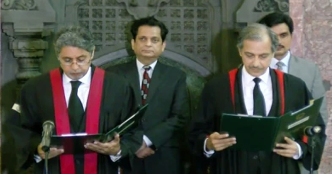 لاہور (نیوز ڈیسک )جسٹس عابد عزیز شیخ نے ہفتہ کو لاہور ہائی کورٹ کے قائم مقام چیف جسٹس کے عہدے کا حلف اٹھا لیا۔حلف برداری کی تقریب لاہور ہائی کورٹ کے ججز لاؤنج میں ہوئی جہاں جسٹس شاہد کریم نے قائم مقام چیف جسٹس سے حلف لیا۔