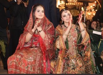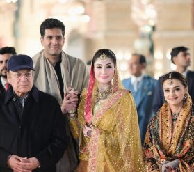 شادی کی تقریب میں سابق وزیراعظم نواز شریف، وزیراعظم شہباز شریف، وزیر اعلیٰ مریم نواز اور اہلخانہ سمیت وفاقی و صوبائی وزرا ودیگر نے شرکت کی۔