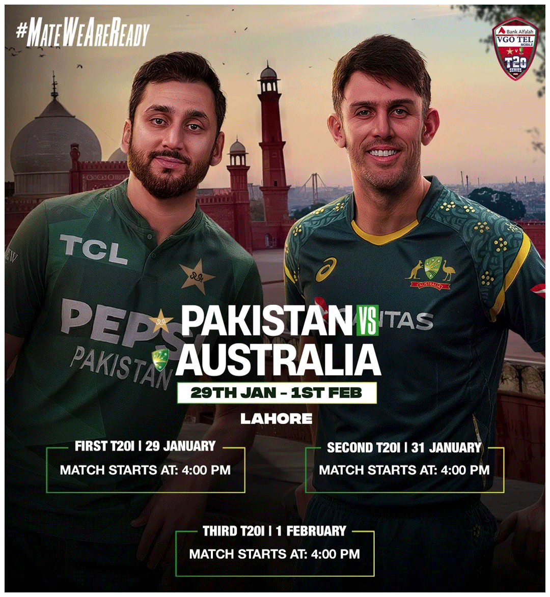 اعلامیے کے مطابق پہلا ٹی 20 میچ 29 جنوری، دوسرا 31 جنوری اور تیسرا یکم فروری کو کھیلا جائے گا۔ پہلے شیڈول کے مطابق میچز شام 6 بجے شروع ہونے والے تھے، تاہم اب نئے شیڈول کے مطابق یہ میچز شام 4 بجے سے شروع ہوں گے۔