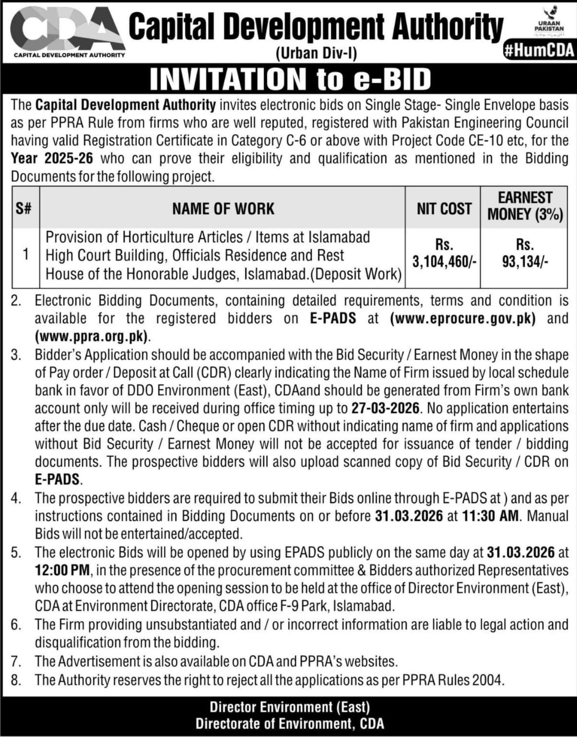 ذرائع کے مطابق اس فیصلے پر سوالات اٹھائے جا رہے ہیں کہ جب سی ڈی اے کے پاس اپنی نرسریاں اور سرکاری وسائل موجود ہیں تو پھر پودے اور پھول لگانے کے لیے اتنی بڑی رقم کا ٹینڈر دینے کی ضرورت کیوں پیش آئی۔