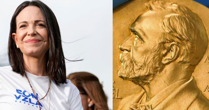اوسلو(اے بی این نیوز) امن کا نوبیل انعام ماریہ کورینہ کے نام رہا ، وینزویلا میں جمہوریت کی جدودجہد کرنے پر نوبیل انعام حاصل کیا۔تفصیلات کے مطابق امن نوبیل انعام کےاعلان کی تقریب اوسلو میں ہوئی ، جس میں امن کے نوبیل انعام کا اعلان کردیا گیا۔