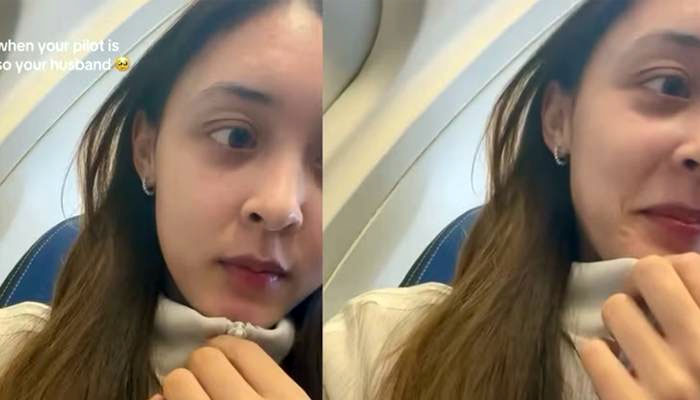 انسٹاگرام پر وائرل ہونے والی ویڈیو میں دیکھا گیا کہ ایک خاتون کھڑکی کے ساتھ والی سیٹ پر بیٹھی پرواز سے پہلے ویڈیو بنا رہی تھیں۔ اسی دوران جہاز کے اسپیکر پر پائلٹ—جو ان کا شوہر ہے—نے اچانک خصوصی اعلان کیا: