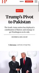 ▪ صدر ٹرمپ کی وزیر اعظم شہباز شریف اور فیلڈ مارشل عاصم منیر کے ساتھ مضبوط ذاتی کیمسٹری بنی ہے، جنہیں انہوں نے کئی بار وائٹ ہاؤس مدعو کیا۔