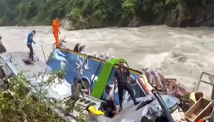 کھٹمنڈو ( اے بی این نیوز ) نیپال میں مسافر بس دریا میں گرنے سے 19 افراد ہلاک اور 25 زخمی ہوگئے۔ حادثہ پیر کی علی الصبح اس وقت پیش آیا جب ایک مسافر بس دارالحکومت کھٹمنڈو جا رہی تھی۔ پولیس کے مطابق بس آدھی رات کے بعد پرتھوی شاہراہ پر پھسل کر گہری کھائی میں جا گری اور نیچے بہنے والےد ریاے کنارے جا پہنچی۔ حادثہ بنیگھٹ کے مقام پر پیش آیا جو کٹھمنڈو سے تقریباً اسی کلومیٹر مغرب میں واقع ہے۔
