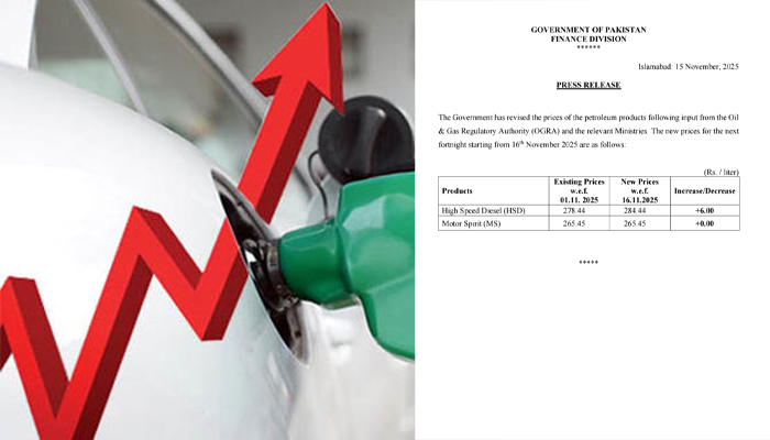 The Government has revised the prices of the petroleum products following input from the Oil & Gas Regulatory Authority (OGRA) and the relevant Ministries. The new prices for the next fortnight starting from 16th November 2025 are as shared below pic.twitter.com/pG6KsOEU4g