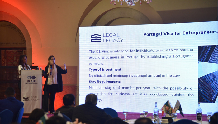 سیمینار میں لیگل لیگیسی لا فرم کی بانی ادریانہ اسپانھولی اور ماریانا واز مارکیس نے پرتگال کے گولڈن ویزا، ڈی 7 پاسِو انکم ویزا اور ڈی 2 انٹرپرینیور ویزا کی تفصیلات پیش کیں۔ انہوں نے بتایا کہ پرتگال دنیا کے محفوظ ترین ممالک میں شامل ہے، کم قیام کی شرط رکھتا ہے اور پانچ سال میں شہریت کا واضح راستہ فراہم کرتا ہے۔