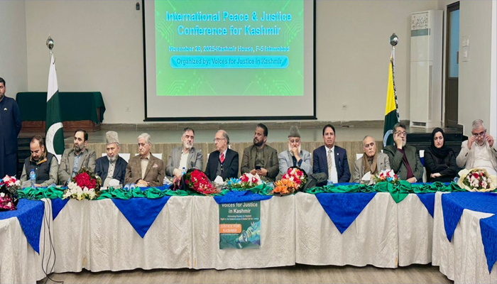 نذیر ہاشمی نے کہا کہ مقبوضہ کشمیر میں آزادی کی تحریک کے دوران کشمیری عوام، عورتیں اور بچے بے پناہ قربانیاں دے چکے ہیں۔ بھارت نے کشمیری عورتوں کی بے حرمتی اور بچوں پر ظلم ڈھایا۔ اس وقت 18 ہزار سے زائد کشمیری بھارت کی جیلوں میں قید ہیں۔شرکاء میں ڈاکٹر غلام نبی فائی، سابق وزیر اعظم سردار یعقوب، سابق صدر سردار مسعود خان، کل جماعتی حریت کانفرنس کے کنوینئر غلام محمد صفی، امیر جماعت اسلامی ڈاکٹر مشتاق، سمی آریجان، عبدالرشید ترابی، بریگیڈیئر ر محمد خان، نبیلہ ارشاد، شاہیر سیالوی، رفیق ڈار، وائس فار جسٹس ان کشمیر کے مرکزی رہنماء اور دیگر رہنما شامل تھے۔کانفرنس میں مقررین نے زور دیا کہ مقبوضہ کشمیر میں موجود عدالتی نظام کشمیری عوام کو حقیقی آزادی فراہم نہیں کر سکتا۔ انہوں نے کہا کہ حق کے اس معرکہ کے بعد کشمیری عوام میں امید کی نئی روشنی پیدا ہوئی ہے اور پاکستان کی ساکھ میں اضافہ ہوا ہے۔ آزادی کے لیے جدوجہد آج بھی جاری رہنی چاہیے۔
