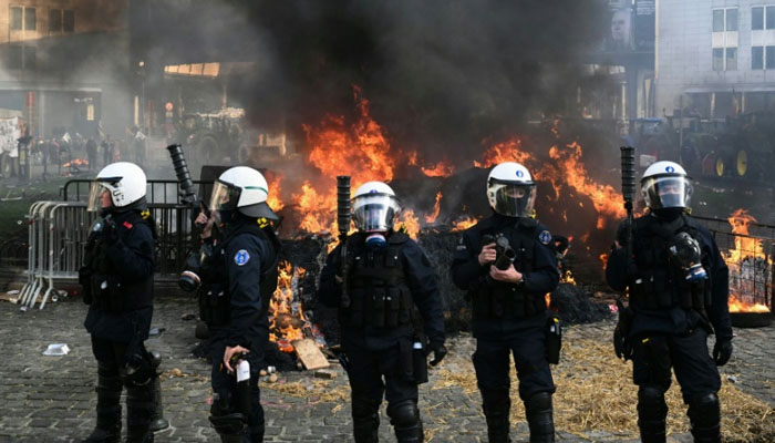 کسان مظاہرین سیکڑوں ٹریکٹر لے کر برسلز کی سڑکوں پر نکل آئے جس کے باعث اہم سڑکیں بلاک ہوگئیں۔