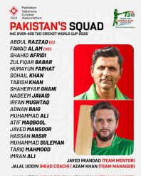 لاہور (ویب ڈیسک) پاکستان ویٹرنز کرکٹ ایسوسی ایشن نے آئی ایم سی اوور 40 ٹی ٹوئنٹی ورلڈ کپ 2025 کے لیے قومی اسکواڈ کا اعلان کردیا۔